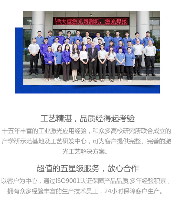 十五年豐富的工業激光應用經驗,和眾多高校研究所聯合成立的產學研示范基地及工藝研發中心,可為客戶提供完整、完善的激光工藝解決方案。